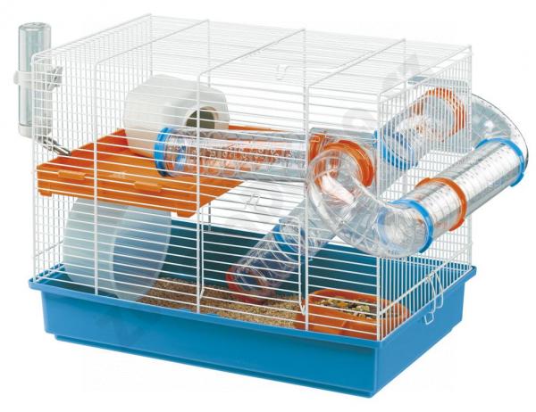 Klietku Laura dodávame s príslušenstvom pre hlodavce: hniezdo, kŕmidlo, pítko, kolotoč, rúrky tunela, poschodie.