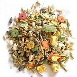 Zloženie: lucerna sušená, vločky kukuričné, vločky hrachové, svätojánsky chlieb, ovos, pšenica, jačmeň, granule lucernové - veľké, slnečnica žíhaná - drobnozrnná, slnečnica čierna, vločky fazuľové, mrkva sušená,